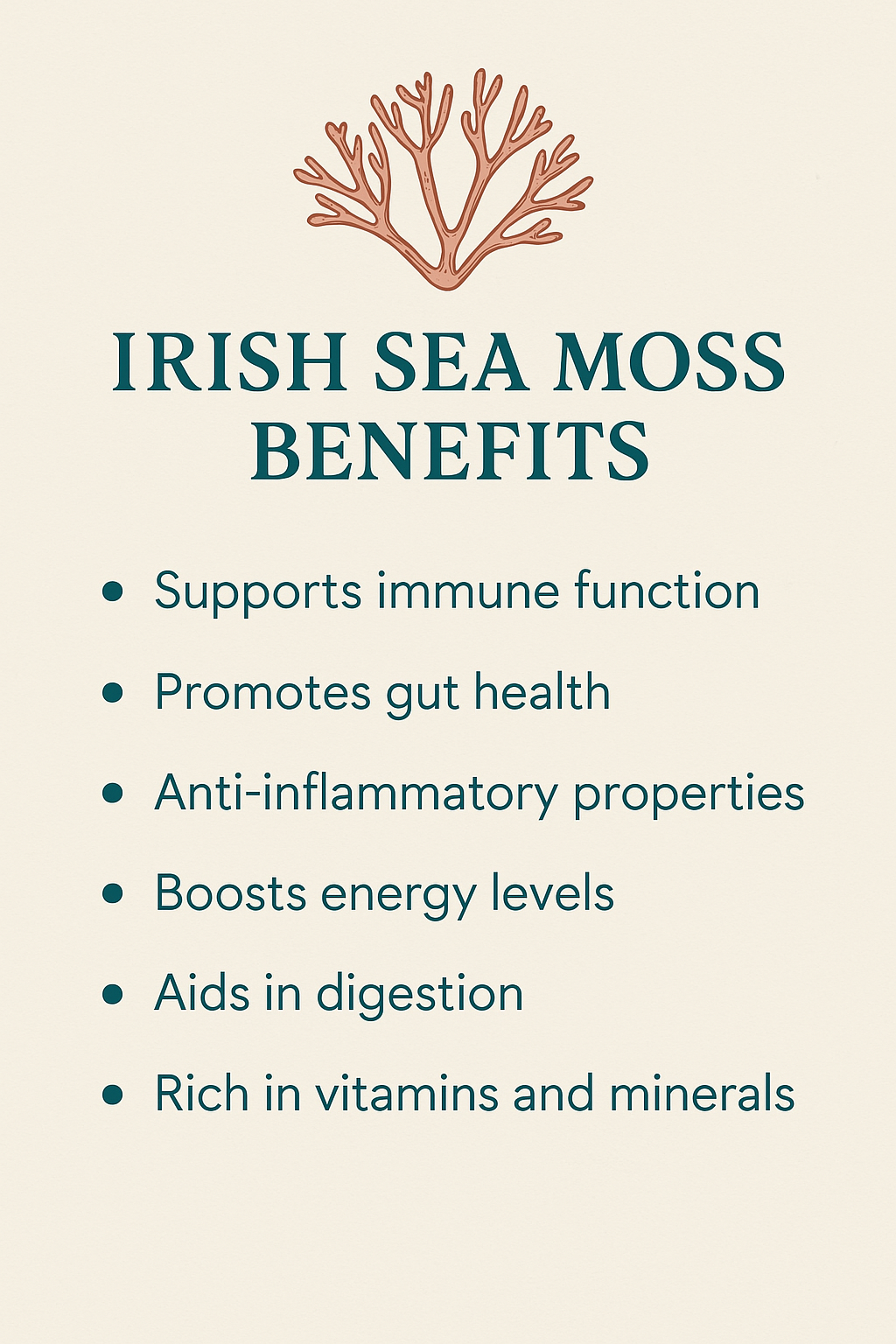 Sea moss is high in dietary fiber, which can aid digestion, prevent constipation, and support a healthy gut microbiome.